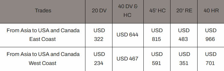 MSC announced it will increase emergency bunker surcharges on routes from Asia to the US and Canada, applicable to all ports from Asia to the US East Coast, US West Coast, and Canada, effective from May 1, 2026 (based on the gate-in date).