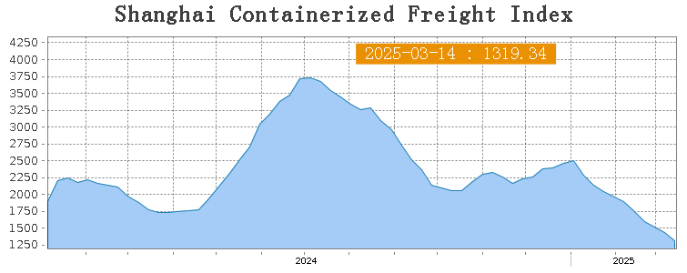 On March 14th, the Shanghai Containerized Freight Index (SCFI) fell 8.1% to 1319.34 points.