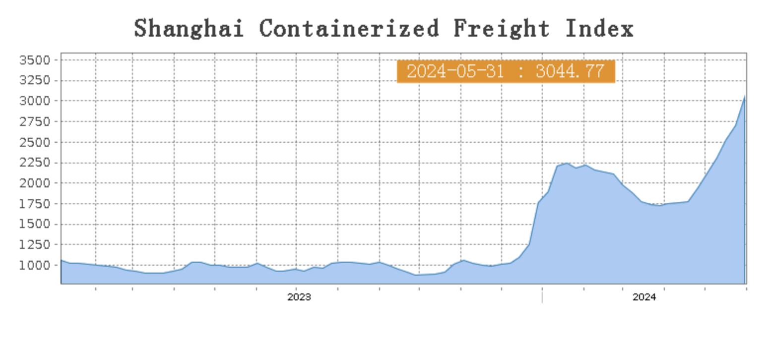 According to data released by the European Union's statistics office, the eurozone's economic sentiment index for May was 96, better than the previous value and market expectations. In addition, the situation in the Red Sea has not been alleviated, leading major shipping companies to continue detouring their voyages, exacerbating market sentiment of tight shipping capacity supply.