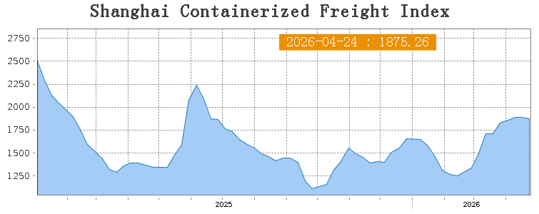 The military conflict in the Middle East continues to maintain a ceasefire, but the future situation still faces significant uncertainty. This week, China's export container shipping market was generally stable, freight rates on most routes fell slightly, and the composite index fell slightly. On April 24, the Shanghai Containerized Freight Index (SCFI) was 1875.2, down 0.6% from the previous period.
