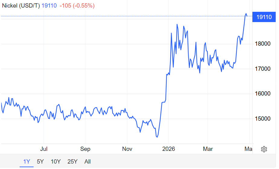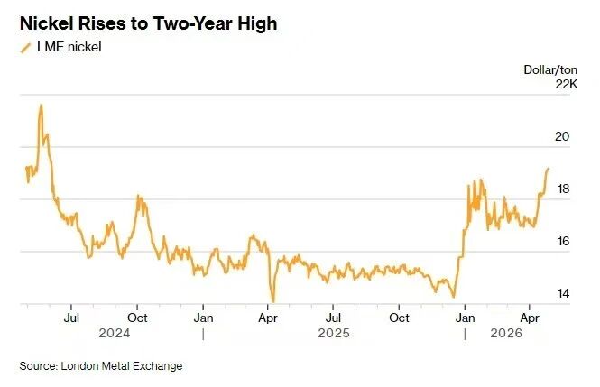 According to Trading Economics data, nickel prices rose to their highest level since June 2024. A CNBC Indonesia report indicated that nickel prices once reached $19,350 per ton, the highest level in nearly two years.